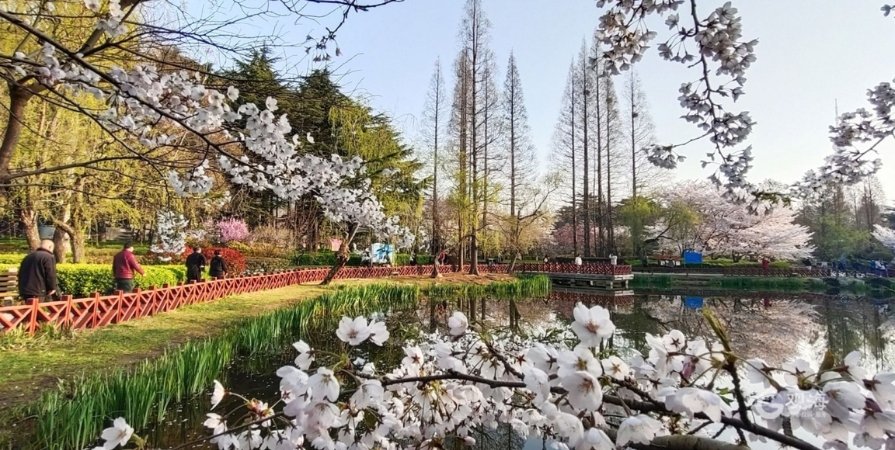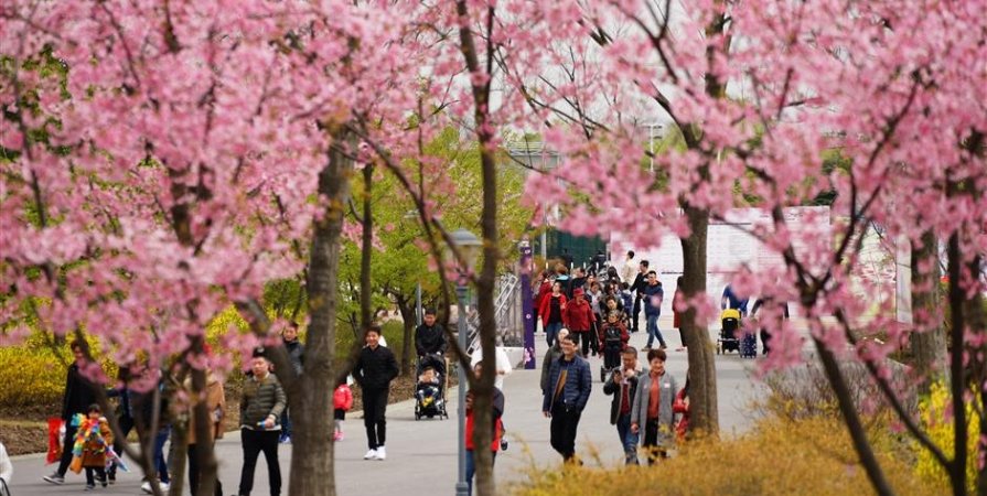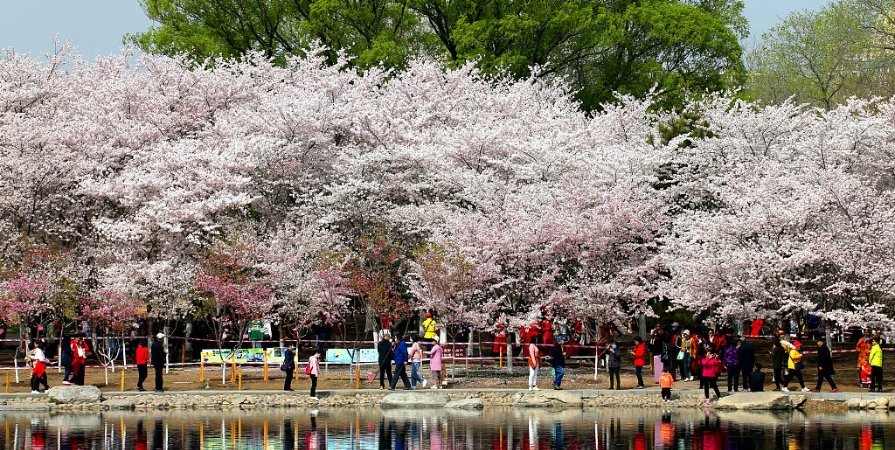 ช่วงฤดูใบไม้ผลิระหว่างเดือนมีนาคม-เมษายนคือช่วงเวลาที่ดีที่สุดในการชมดอกซากุระในจีน ต้นซากุระที่ปลูกอยู่ทั่วทั้งเมืองจะออกดอกพร้อมกันสวยงามตระการตา สวนสาธารณะและริมถนนจะกลายเป็นสีชมพูอ่อนสดใสไปทั่วทั้งเมือง