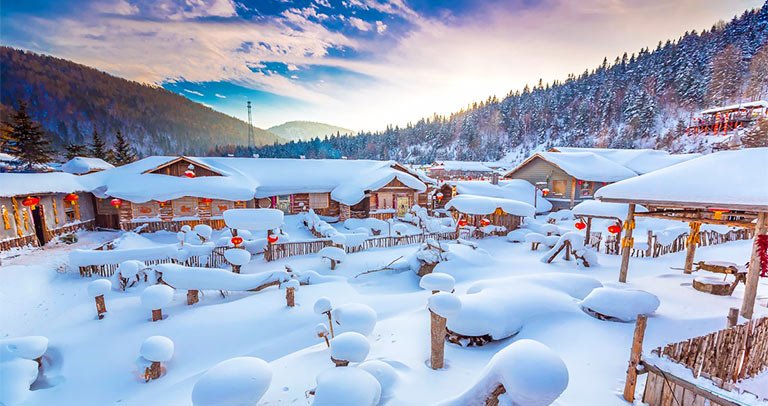 China Snow Town เป็นอีกหนึ่งสถานที่ท่องเที่ยวในฮาร์บิน จีน ที่โด่งดังในเรื่องของทัศนียภาพหิมะที่สวยงามราวกับสวรรค์ ตั้งอยู่ห่างจากเมืองฮาร์บินประมาณ 280 กิโลเมตร ที่นี่มีหิมะตกหนาถึง 2 เมตร สร้างภาพ "ม่านหิมะ" ที่แขวนจากชายคาลงมาถึงพื้น นักท่องเที่ยวสามารถร่วมกิจกรรมฤดูหนาวมากมาย เปิดให้เข้าชมตั้งแต่ 24 พฤศจิกายนถึงต้นเดือนมีนาคม