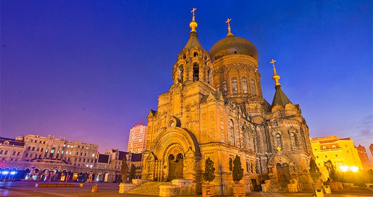 เมืองฮาร์บิน ประเทศจีน ตั้งอยู่ทางตอนเหนือสุดของมณฑลเฮย์หลงเจียง ซึ่งมีพรมแดนติดกับรัสเซีย ทำให้ได้รับอิทธิพลทางวัฒนธรรมและสถาปัตยกรรมแบบรัสเซียอย่างเห็นได้ชัด จนได้รับฉายาว่า "นครแห่งภาคพื้นยูเรเชียตะวันออก"