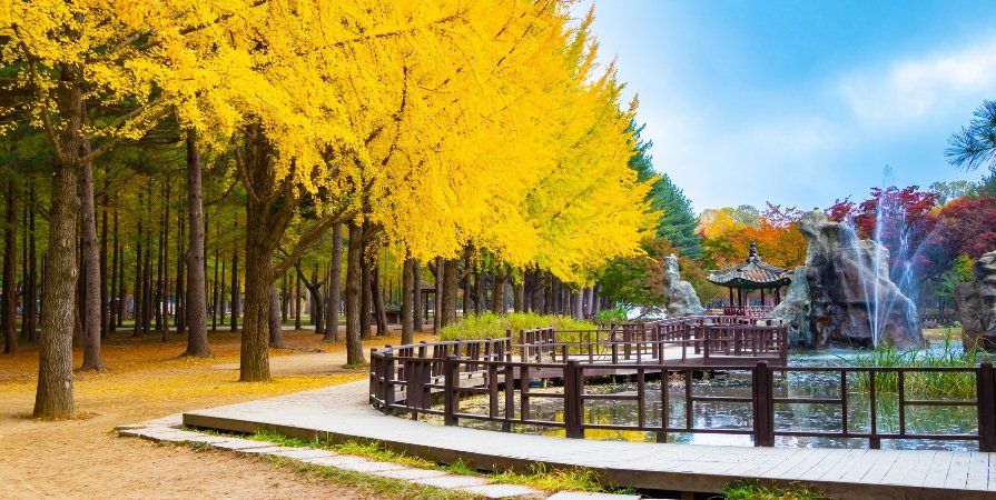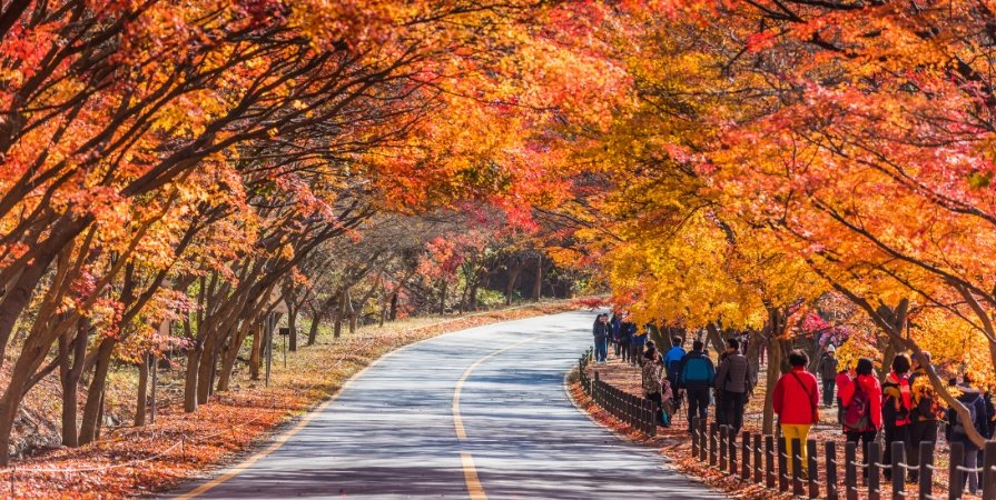 ในเดือนกันยายนถึงพฤศจิกายนเป็นฤดูใบไม้ร่วงเกาหลี ใบไม้จะเปลี่ยนเป็นสีเหลืองส้ม สร้างบรรยากาศสวยงามน่าประทับใจ เหมาะสำหรับคนที่ชื่นชอบธรรมชาติและการถ่ายภาพ