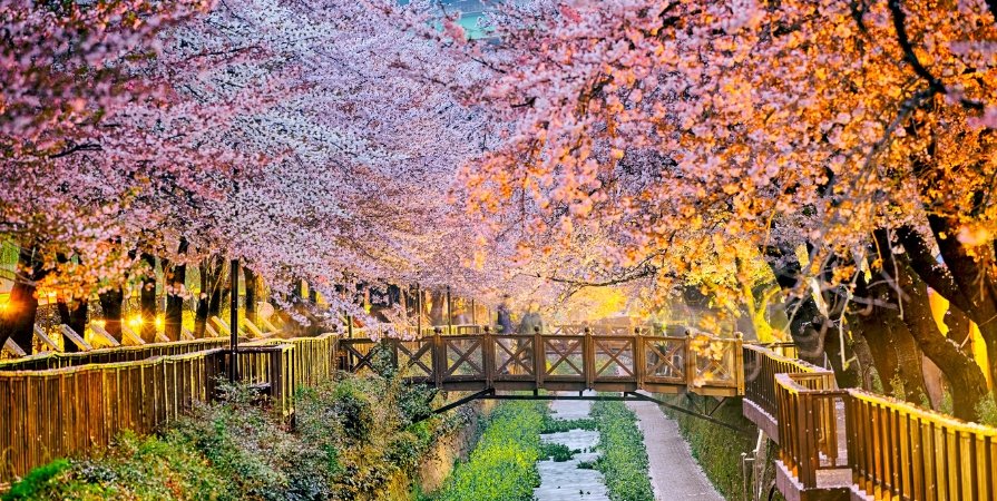ในช่วงเดือนเมษายน ซึ่งเป็นฤดูใบไม้ผลิเกาหลี อุณหภูมิเฉลี่ยจะอยู่ที่ประมาณ 12-18 องศาเซลเซียส อากาศจะเริ่มอุ่นขึ้น แต่ยังคงมีความเย็นสบาย เหมาะสำหรับการชมดอกซากุระบานสะพรั่ง เที่ยวเกาหลี ช่วงไหนดี สำหรับสายชมดอกไม้ ต้องยกให้ฤดูใบไม้ผลินี่แหละ