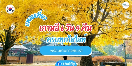 วันนี้เรา Thaifly จะพาไปเปิดประสบการณ์ใหม่ ๆ กับการ ทัวร์เกาหลี ผ่านแพลนเที่ยวเกาหลี 6 วัน 5 คืน ที่จัดเต็มทุกสถานที่เด็ด พร้อมไฮไลท์เด่นในแต่ละที่ให้คุณได้สัมผัส ใครที่กำลังวางแผนไปเที่ยวเกาหลีเป็นครั้งแรก ไม่ต้องกังวลไป เราจัดแพลนเที่ยวเกาหลีมาให้พร้อมเสร็จสรรพ ทั้งสถานที่ท่องเที่ยว การเดินทาง ร้านอาหาร ที่พัก ช้อปปิ้ง และอื่น ๆ อีกมากมาย รับรองว่าหมดห่วงแน่นอน เตรียมกระเป๋าให้พร้อมแล้วไปสนุกกันเลย