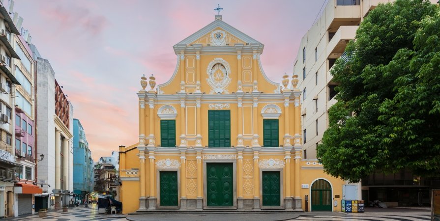 โบสถ์เซนต์ดอมินิค โบสถ์สไตล์บารอคสีเหลืองที่ได้รับอิทธิพลจากโปรตุเกสและสเปน ด้านในสามารถเข้าชมได้โดยไม่มีค่าใช้จ่าย และยังเป็นสถานที่สำคัญทางประวัติศาสตร์คือ เคยตีพิมพ์หนังสือพิมพ์ภาษาโปรตุเกสฉบับแรกในมาเก๊าอีกด้วย ถือเป็นที่เที่ยวมาเก๊าอีกแห่งที่ไม่ควรพลาด