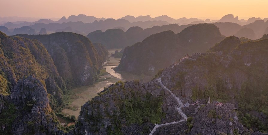 โปรแกรมทัวร์เวียดนาม ขอแนะนำให้คุณไปชมวิวทุ่งนาสีเขียวสดใสสุดลูกหูลูกตา ณ ถ้ำมัวกัน นี่ถือเป็นอีกหนึ่งสถานที่ที่มีชื่อเสียงที่สุดในเมืองนินห์บินห์ เมื่อคุณไต่บันไดขึ้นไปชมวิวที่ด้านบนของถ้ำ ภาพที่ได้คือทุ่งนาสีเขียวกว้างไกลสุดสายตา 360 องศาเลยทีเดียว เป็นวิวทิวทัศน์ที่หาชมได้ยาก เหมาะกับคนรักธรรมชาติและไลฟ์สไตล์ชิล ๆ มาก ๆ