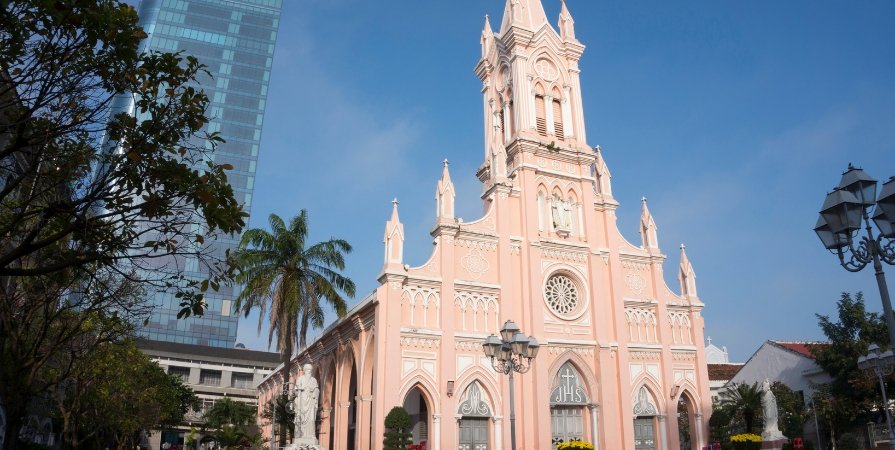 นอกจากแลนด์มาร์คสำคัญแล้ว ที่เที่ยวเวียดนามดานัง ก็ยังมีโบสถ์ชื่อดังอย่าง โบสถ์คริสต์ดานังด้วย โบสถ์สีชมพูหวานนี้เป็นจุดเริ่มต้นของศาสนาคริสต์ในประเทศเวียดนาม สร้างขึ้นตั้งแต่ช่วงที่ดานังยังเป็นอาณานิคมของฝรั่งเศส สถาปัตยกรรมโบสถ์เป็นแบบโกธิคสไตล์ผสมผสาน การตกแต่งภายในก็ปราณีตสวยงามน่าชม อีกทั้งยังเป็นโบสถ์เก่าแก่สุดในดานัง ทำให้เข้าไปนั่งสงบจิตใจให้ย้อนกลับไปอยู่ในยุคสมัยเก่า ๆ ได้อย่างน่าประทับใจ
